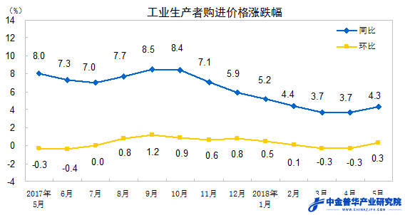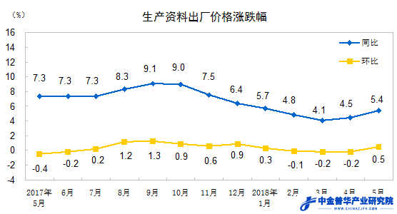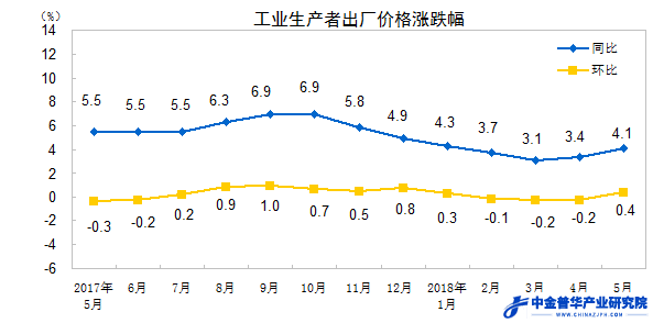 2018年5月份工業(yè)生產(chǎn)者出廠價(jià)格同比上漲4.1%